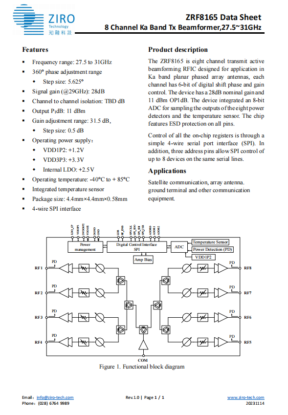 Ka 段四通道多功能发射芯片 ZRF8104