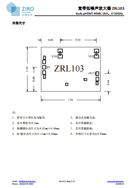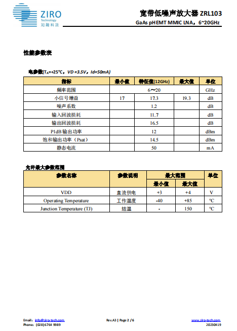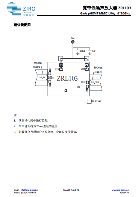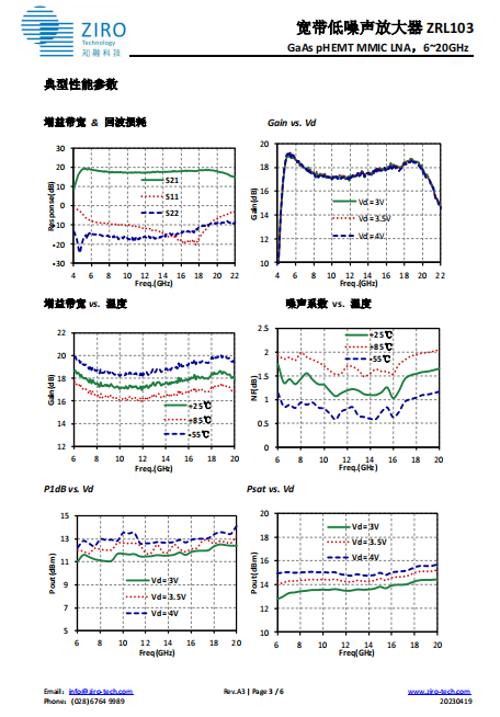 宽带低噪声放大器 ZRL103LP3