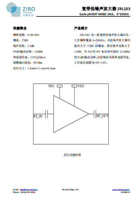 宽带低噪声放大器 ZRL103