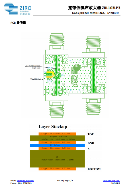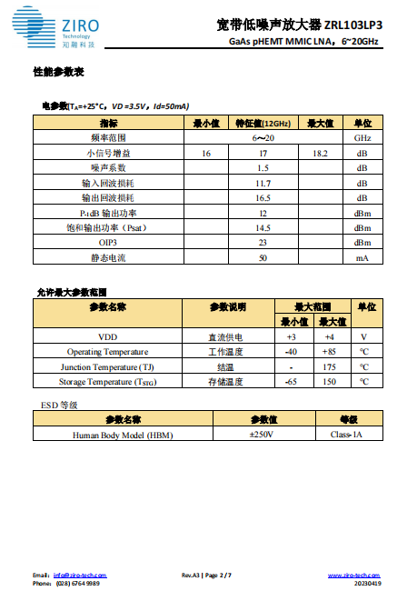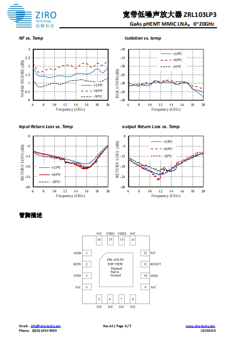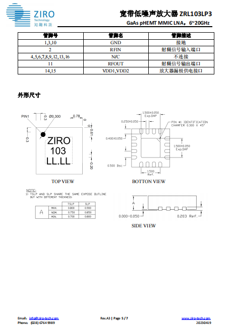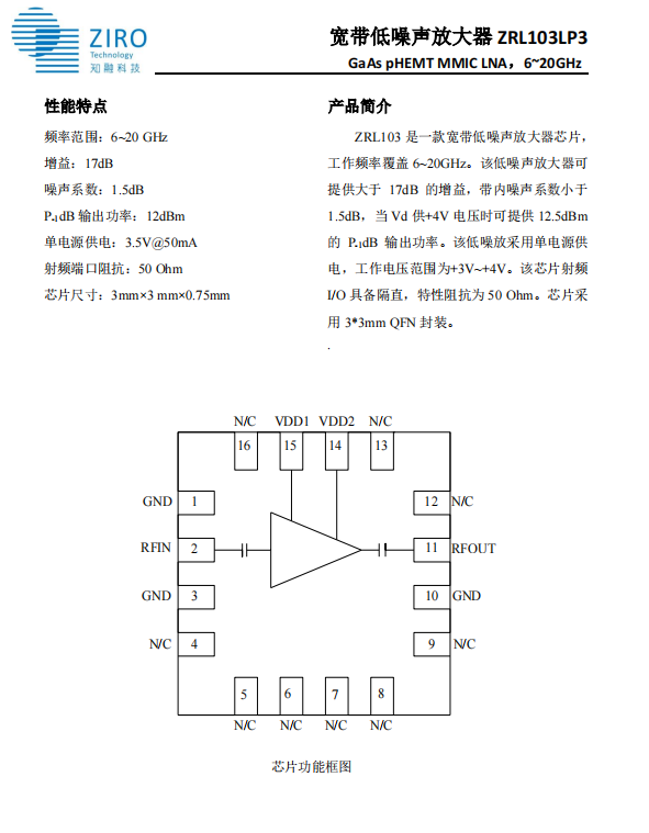 宽带低噪声放大器 ZRL103LP3