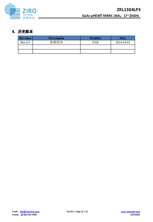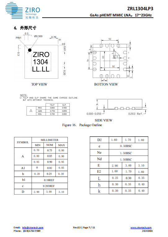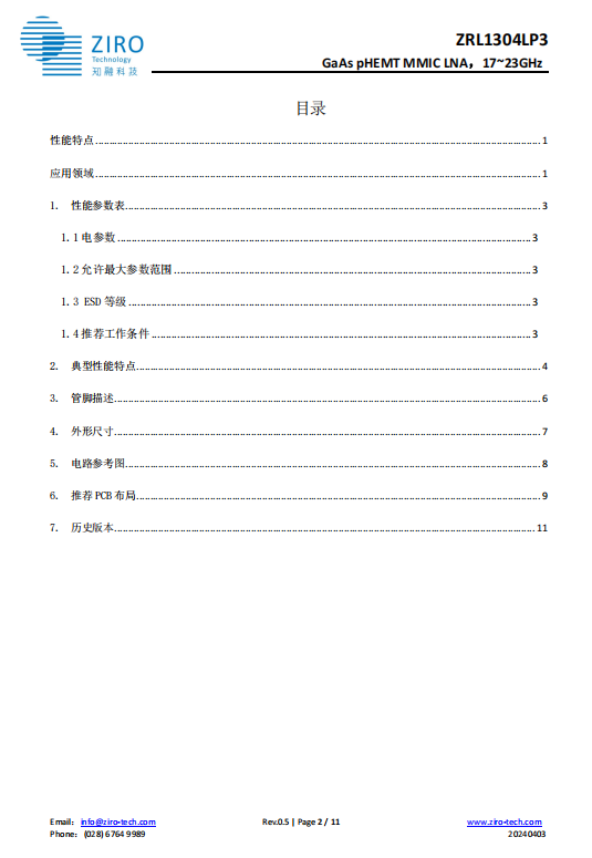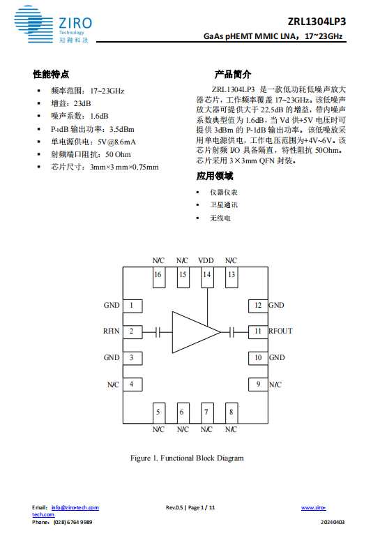 低噪声放大器 ZRL1304LP3